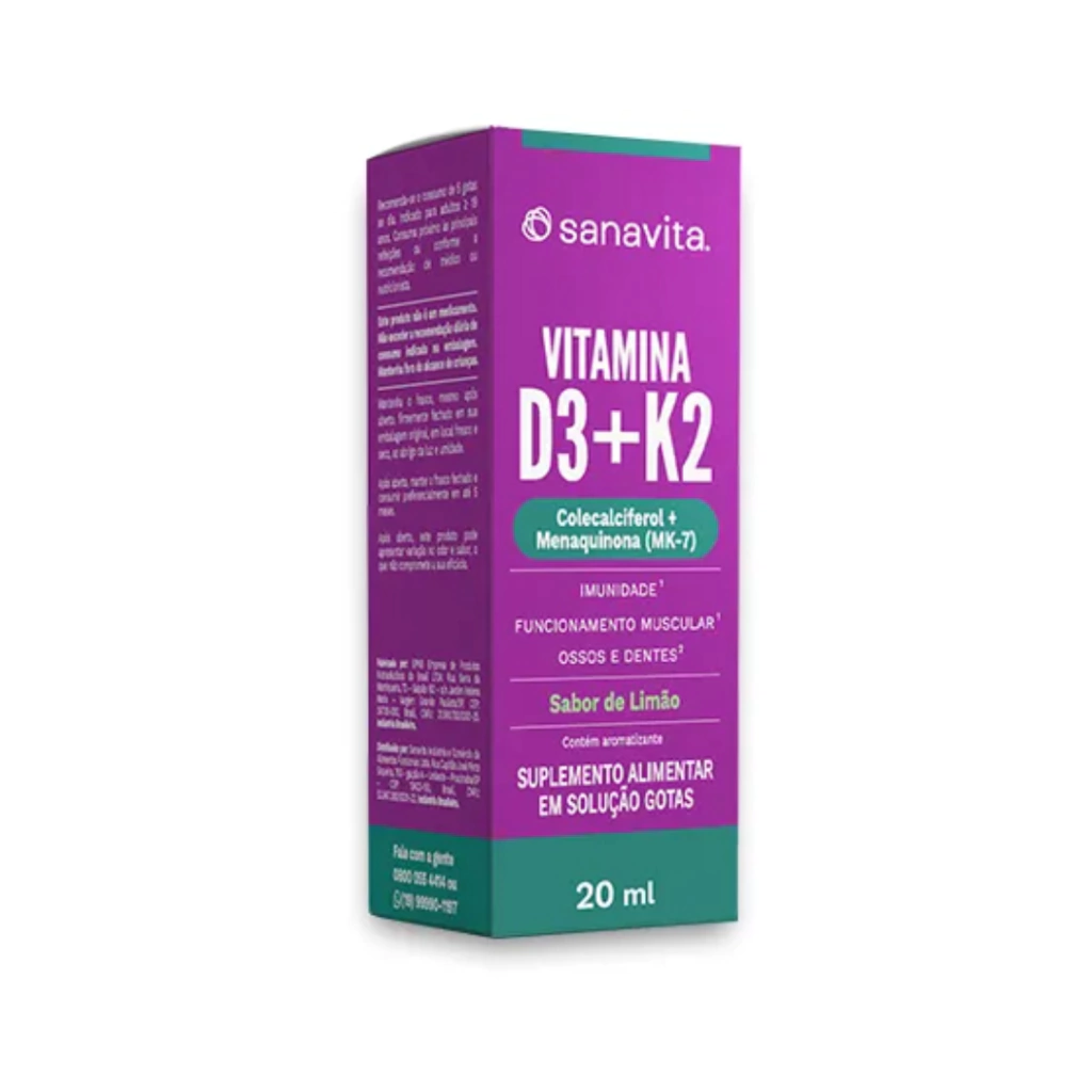 Vitamina D3+K2 da Sanavita é um suplemento alimentar que oferece a sinergia perfeita entre a vitamina D3 na forma de colecalciferol (2.000 UI), com a forma bioativa e biodisponível da vitamina K, a menaquinona (MK-7).