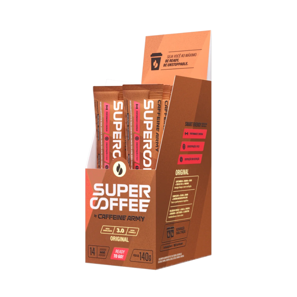 Chegou o SuperCoffee Sachê com a mesma qualidade do maravilhoso SuperCoffee Tradicional. Bebida termogênica e energética que através de uma combinação única, aumenta sua performance física e cognitiva. Promove atenção e concentração além de fornecer energia limpa e constante. Feito para te tornar incrível, um blend de 12 superalimentos criado para acelerar a sua queima de gordura, com intensa energia, foco e clareza mental.